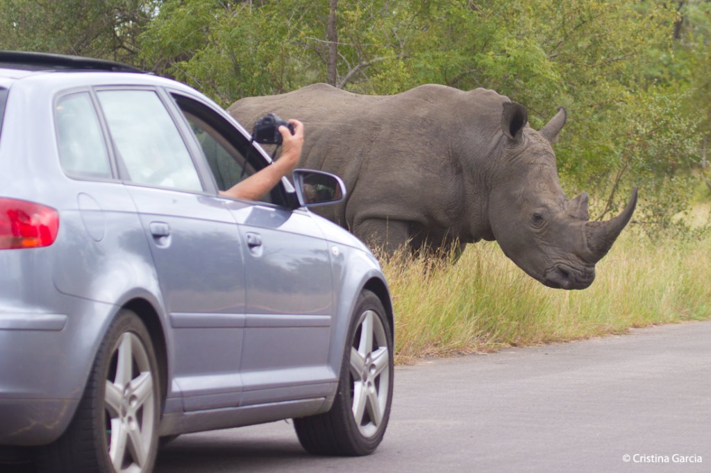 Rhino poaching and elephant poaching are a real problem in Kruger and tourists have occasionally encountered poachers while driving along the Kruger roads. Never EVER talk to a suspected poacher. If you see something suspicious and you believe the people involved are indeed poachers (people walking into the bush with guns, or other weird behavior) take a photo if you can (make sure it is safe for you to do so), if you can get the license plate even better. Get anything that can be used to identify these individuals. ONLY if it is safe for you! Do it and get out of there. Fast. Find mobile phone reception and call 0800 205 005 or 08600 10111, or drive to a rest camp and report them.
